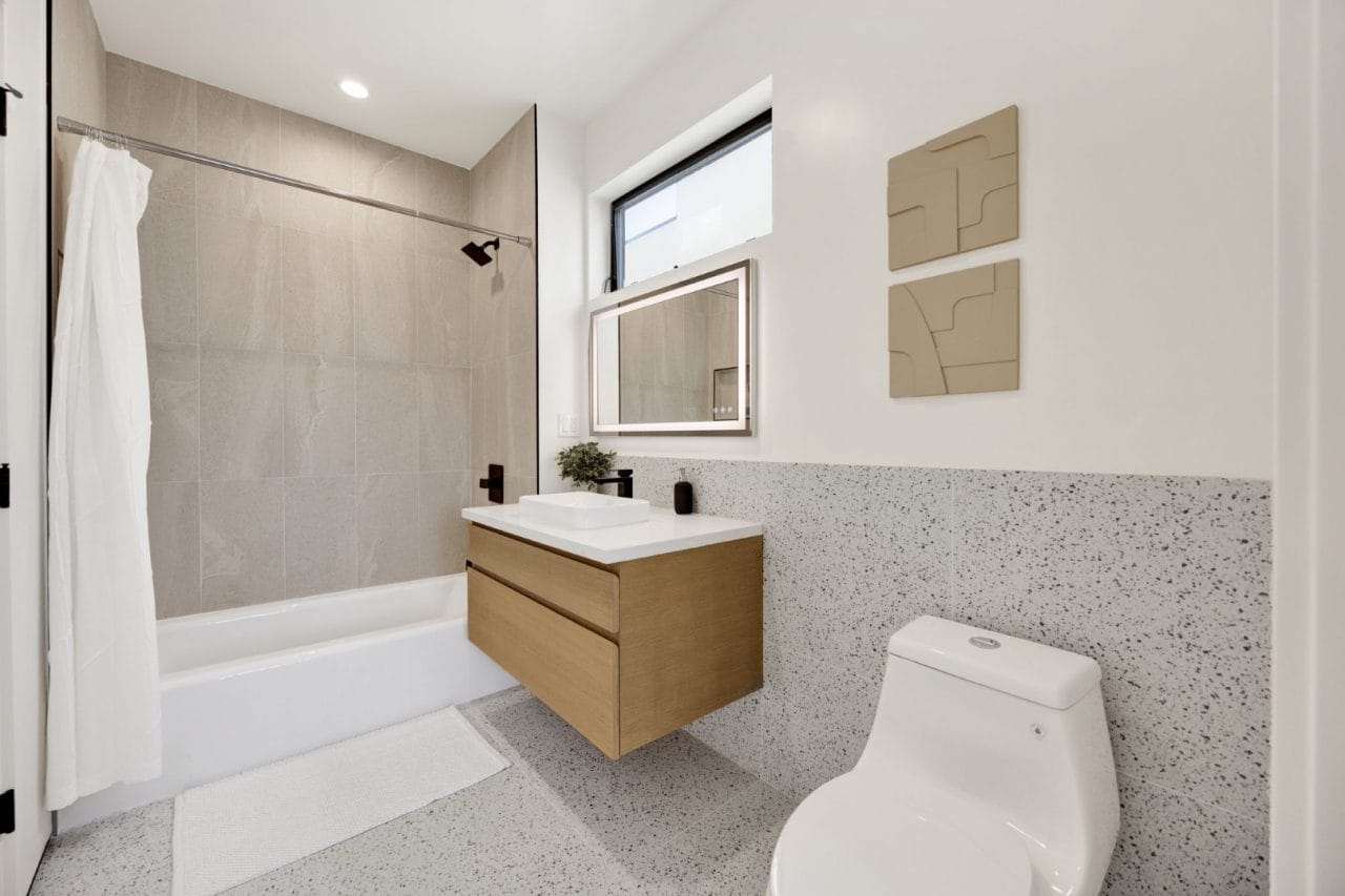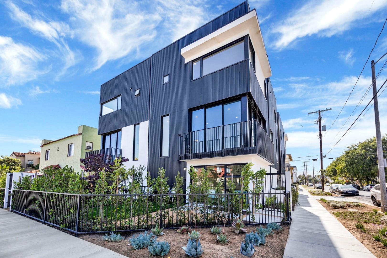Project Description: Four 1,865 SF Townhouse-style homes with common driveway using the Los Angeles Small Lot Subdivision ordinance (LAMC Section 12.22-C.27) which allows parcels with a residential zoning designation to be legally subdivided. Each townhouse occupies its own discreet parcel, and each is sold and financed as single-family home – no homeowner’s association. All homes include fenced, private yard space, a gated entry and secured, garaged parking.