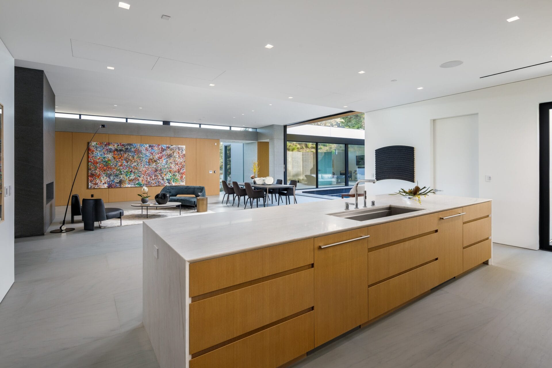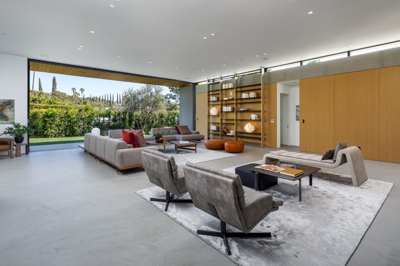 Project Description: The Loma Vista is a 6,352 SF house built in the Trousdale area of Beverly Hills. It includes a 181 SF exercise/pool house/bar and private theater.